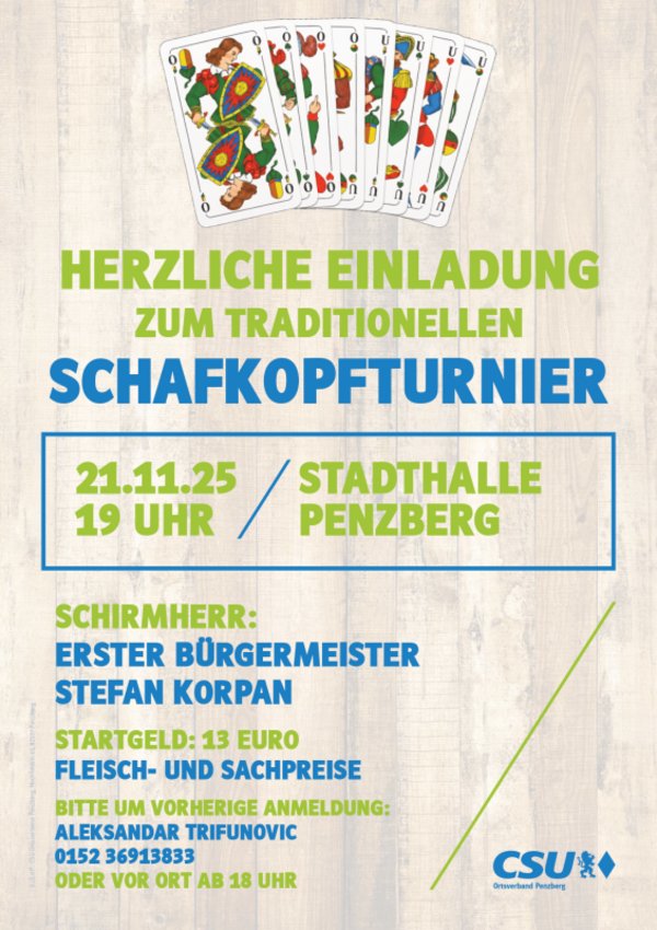 Herzliche Einladung zum traditionellen Schafkopfturnier der CSU Penzberg